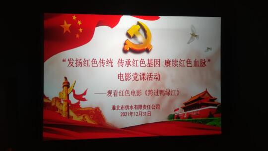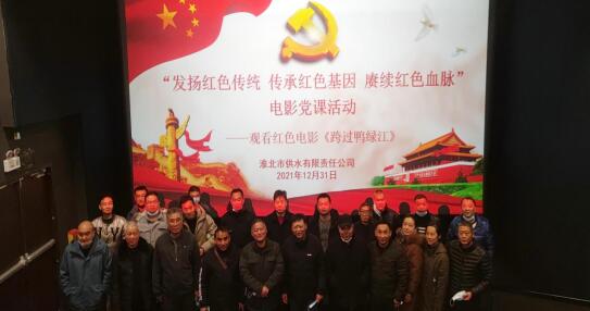 為進一步把黨史學(xué)習(xí)教育走深走實,傳承革命精神,2021年12月31日,供水公司組織黨員開展“發(fā)揚紅色傳統(tǒng),傳承紅色基因,賡續(xù)紅色血脈”電影黨課活動,集中觀看紅色電影《跨過鴨綠江》。