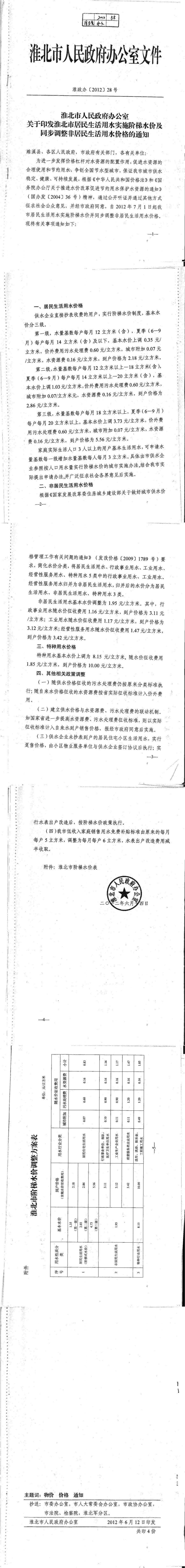 淮北市人民政府關(guān)于印發(fā)淮北市居民生活用水實(shí)施階梯水價(jià)及同步調(diào)整非居民生活用水價(jià)格的通知 淮政辦【2012】28號(hào)
