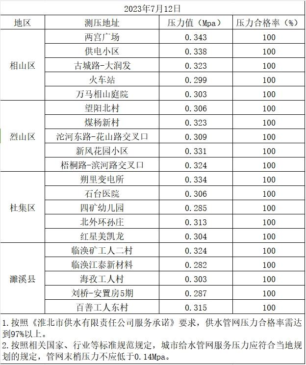 2023年7月12日水壓信息公開