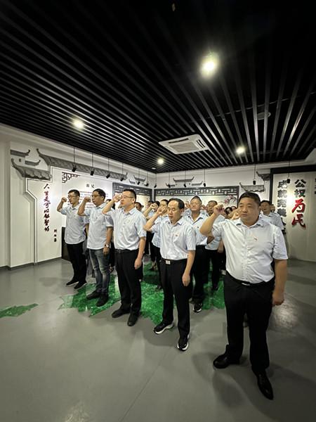 活動(dòng)最后,全體黨員干部在黨旗和入黨誓詞展示墻前莊嚴(yán)肅立,“我志愿加入中國(guó)共產(chǎn)黨,擁護(hù)黨的綱領(lǐng),遵守黨的章程……”面對(duì)鮮紅的黨旗,以集體宣誓的方式重溫了入黨誓詞,將誓詞聲聲印在心中、刻在腦中。