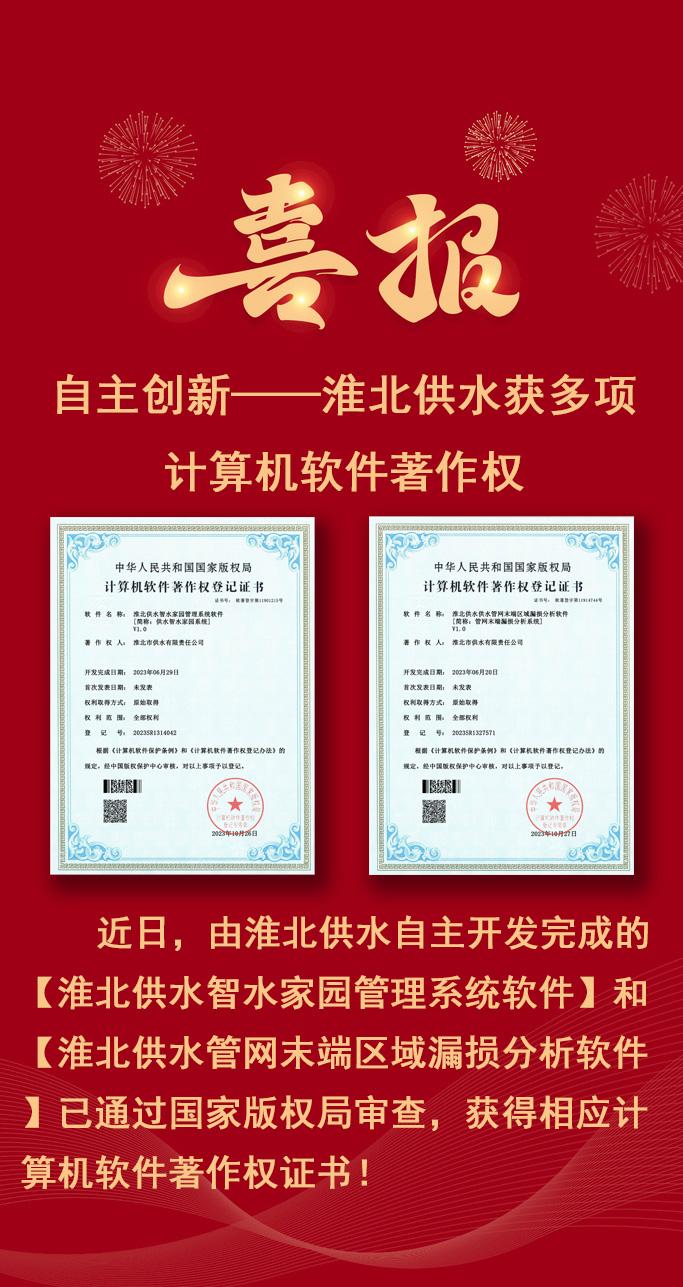 自主創(chuàng)新——淮北供水獲多項計算機(jī)軟件著作權(quán)