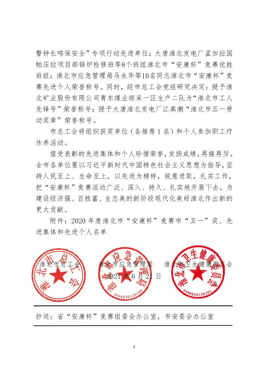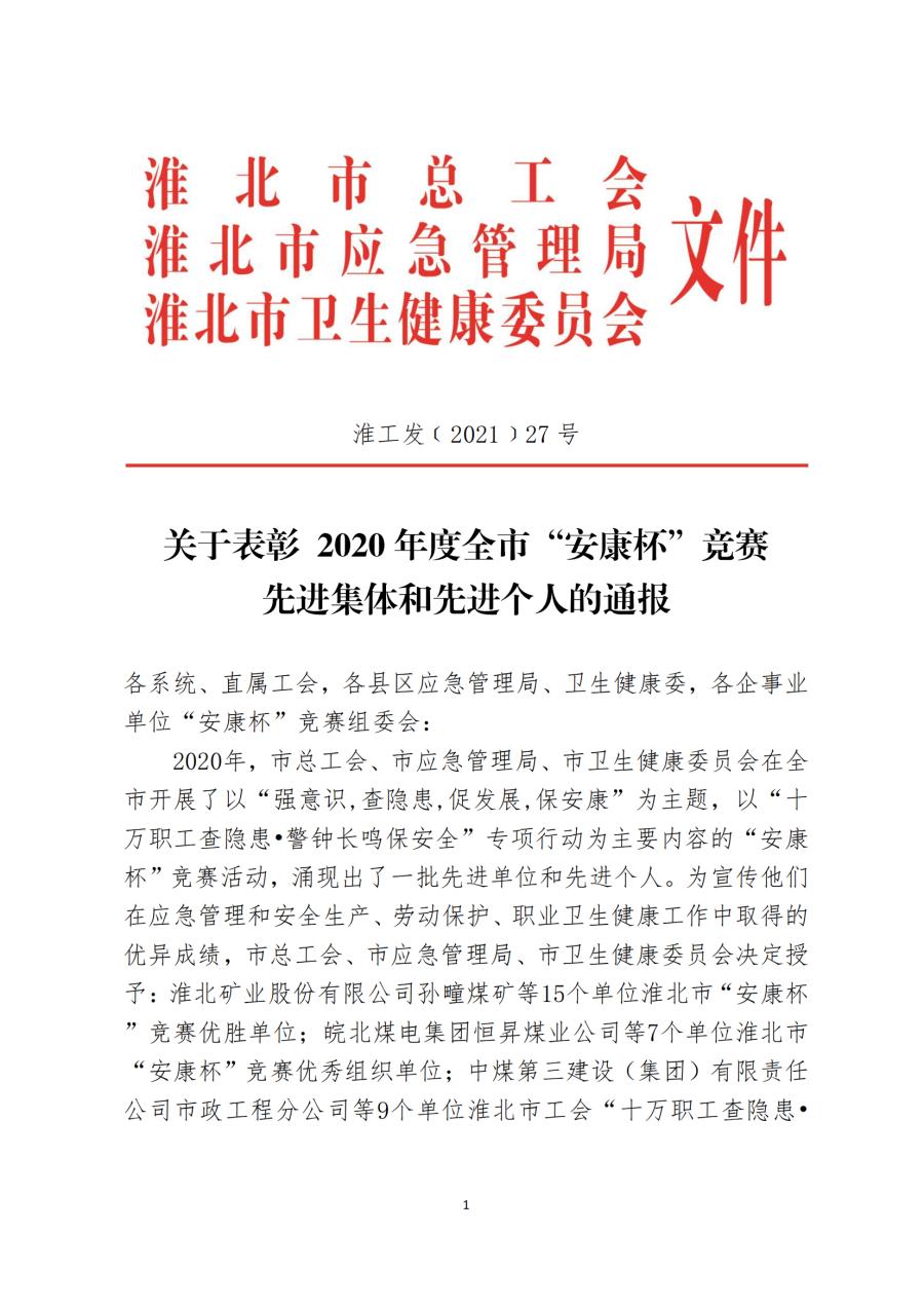關(guān)于表彰 2020 年度全市“安康杯”競(jìng)賽 先進(jìn)集體和先進(jìn)個(gè)人的通報(bào)