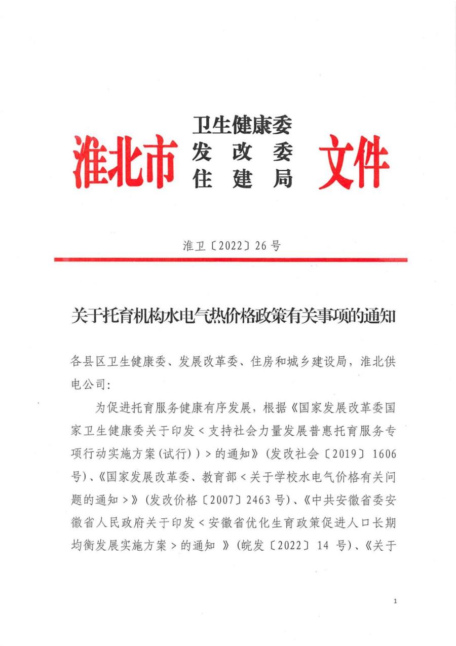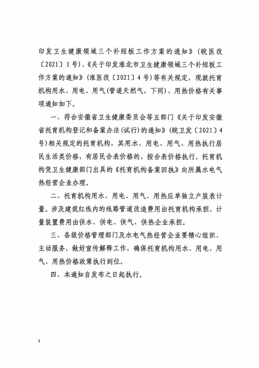 關(guān)于托育機構(gòu)水電氣熱價格政策有關(guān)事項的通知