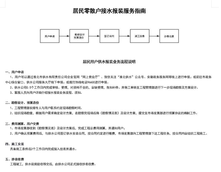 居民零散戶接水報(bào)裝服務(wù)指南